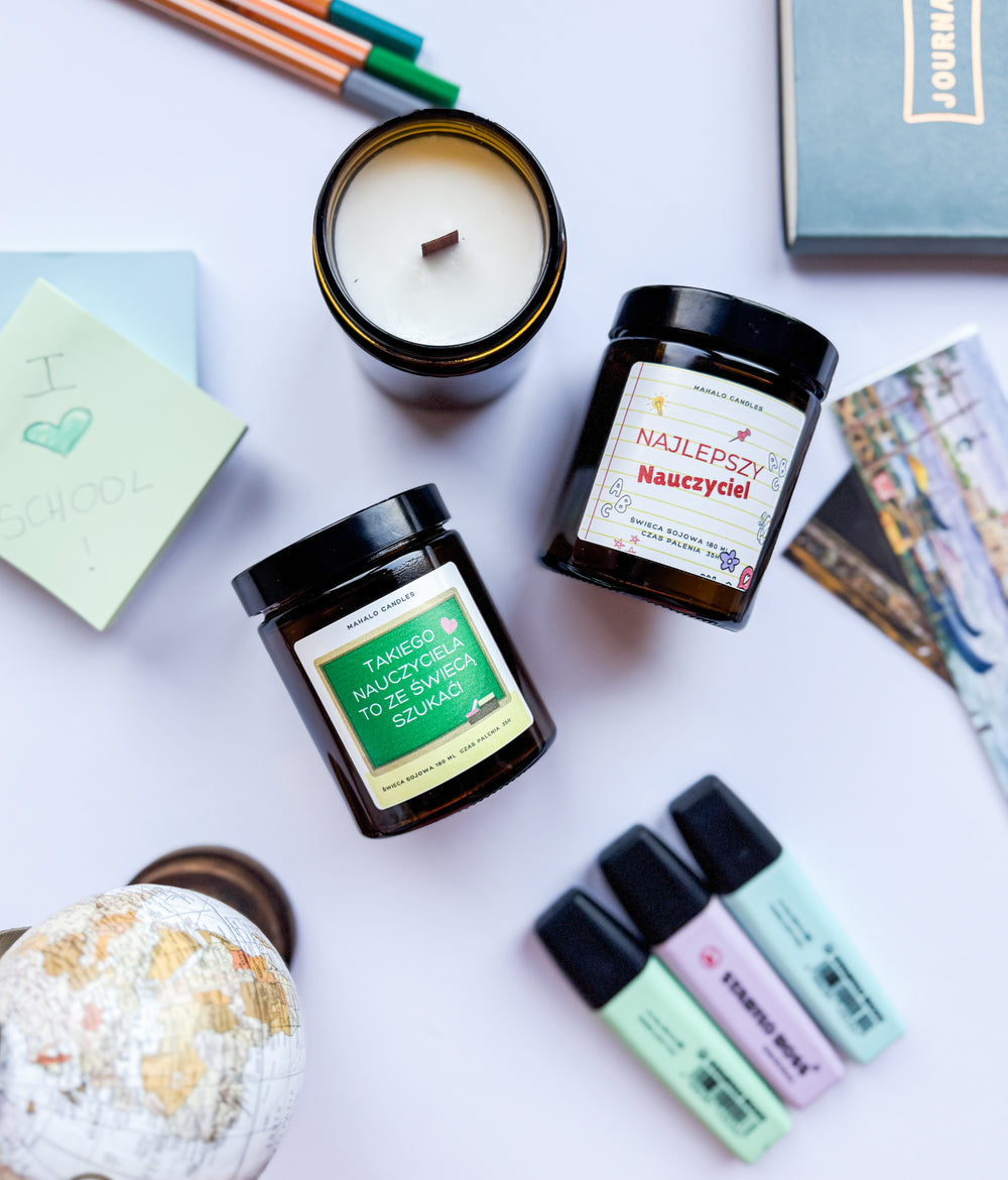 Każda świeca powstaje ręcznie, dzięki czemu każda sztuka jest unikalna. To mały, ale wyjątkowy sposób na podziękowanie NAJLEPSZEMU NAUCZYCIELOWI. 🎓🍎