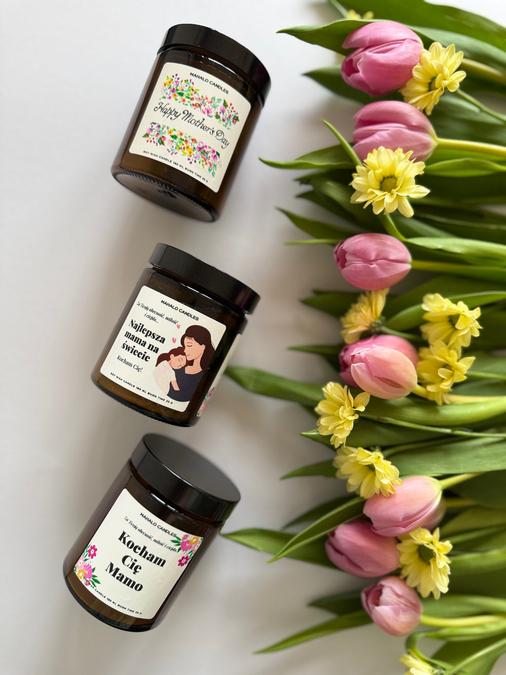 Świeca sojowa zapachowa Piwonia KOCHAM CIĘ MAMO – 180ml – Mahalo Candles